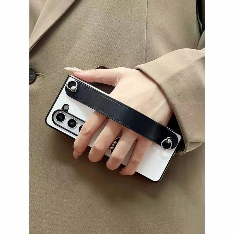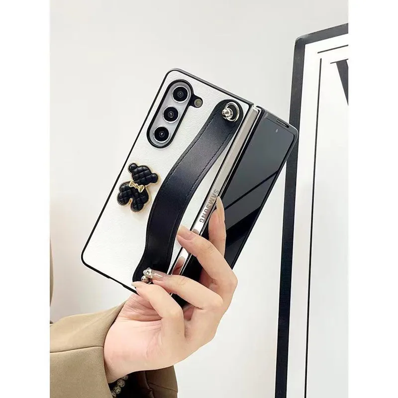 Fashion 3D Bear Wrist Bracelet Phone Case for Samsung Galaxy ZFold 5 ZFold 6 7 Z Fold 4 3 2 Lanyard Necklace Chain Leather Cover