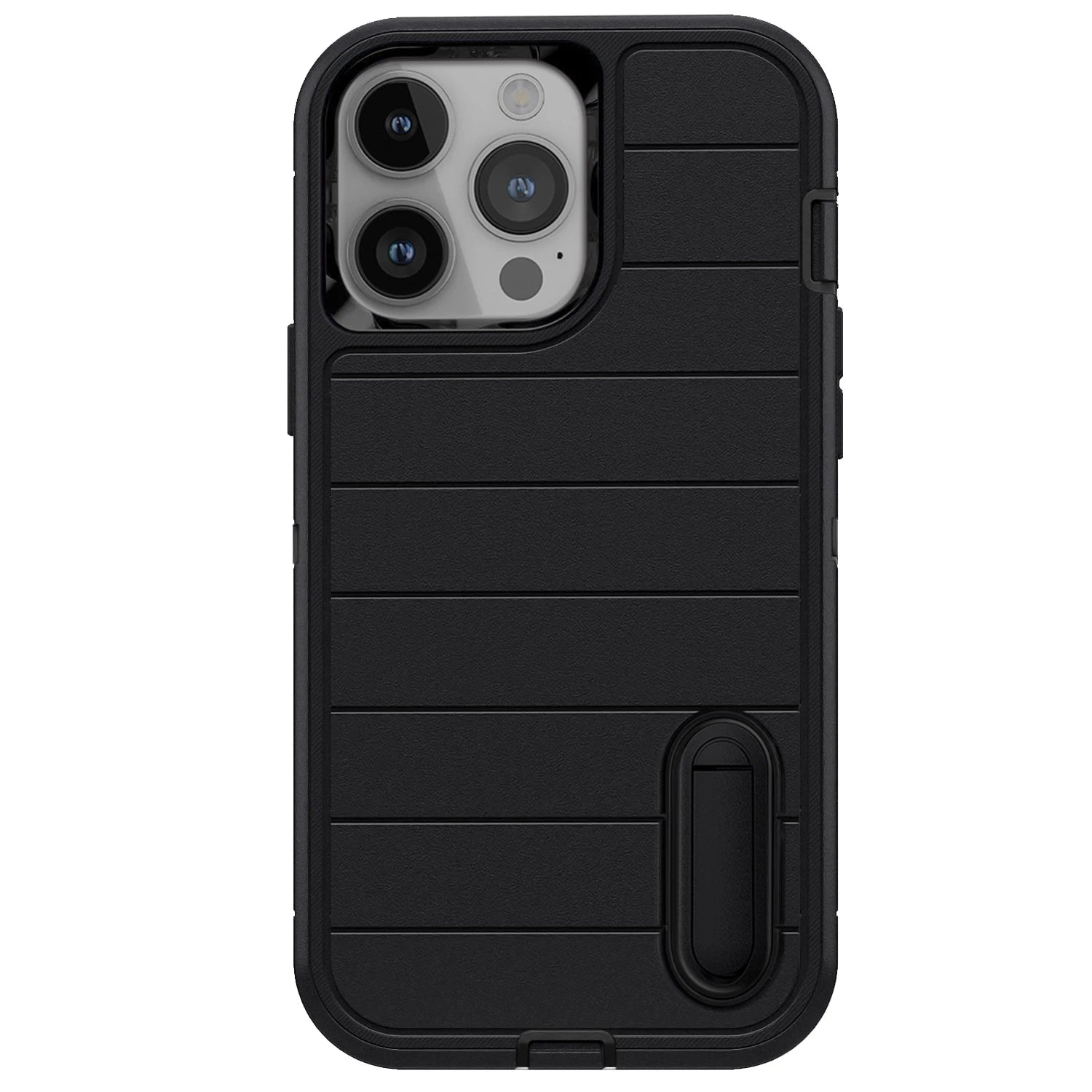 For iPhone 14/iPhone 14 Plus/iPhone 14 Pro/iPhone 14 Pro Max 5G 3-Layers Heavy Duty Protective Kickstand Phone Cover Black Case