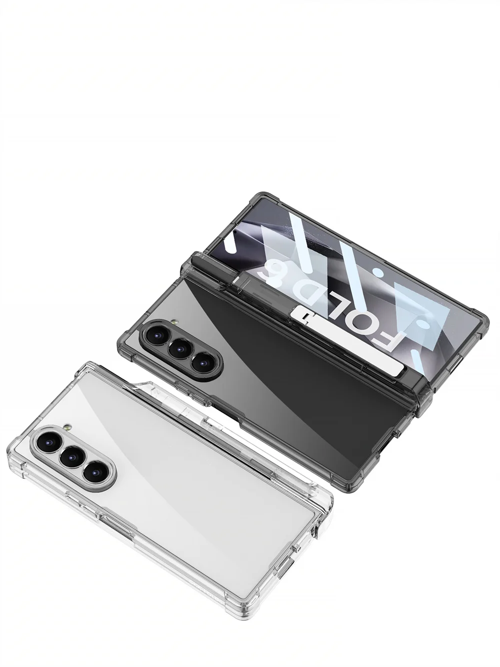 Transparent Airbag Hinge Protection Case for Samsung Galaxy Z Fold 6 With S Pen Holder ZFold 6 Built-in Screen Protector Cover